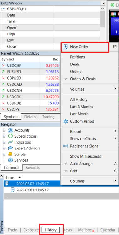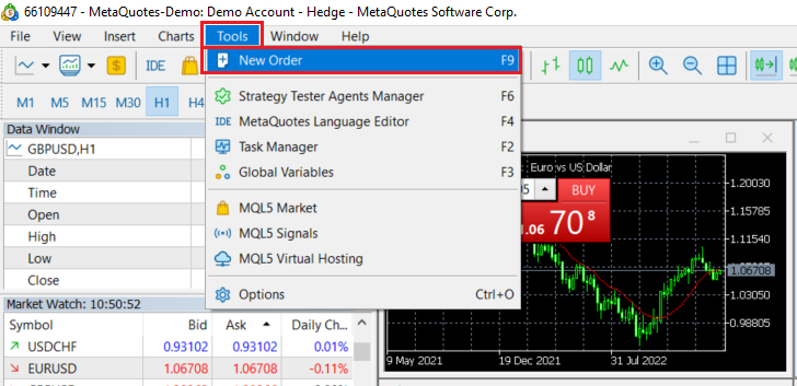 Creating a new order means opening a new position or adding to an existing position. MT5 can add new positions in multiple tool modules. You can create a new order in the following ways: