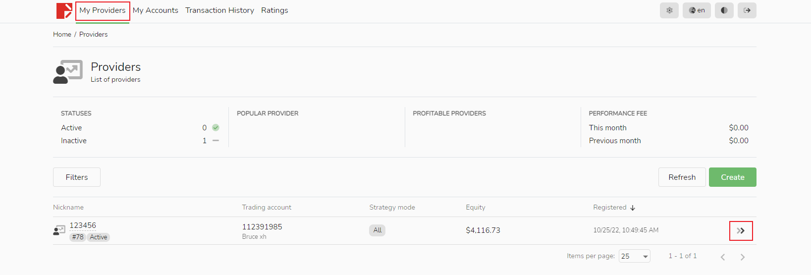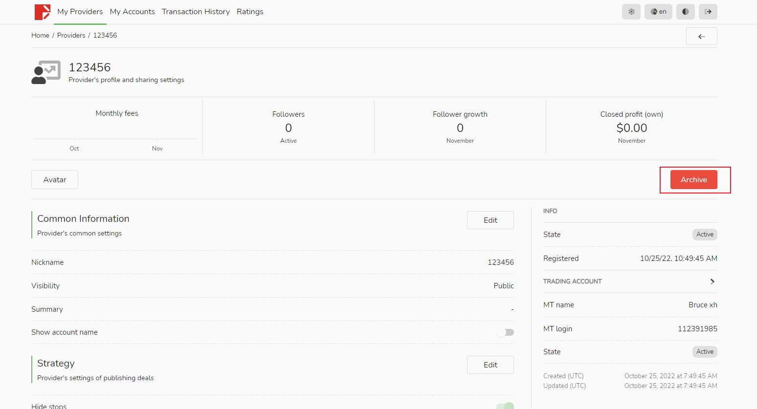 1. En la pestaña "Mis fuentes", haga clic en la estrategia de señal que desea archivar.