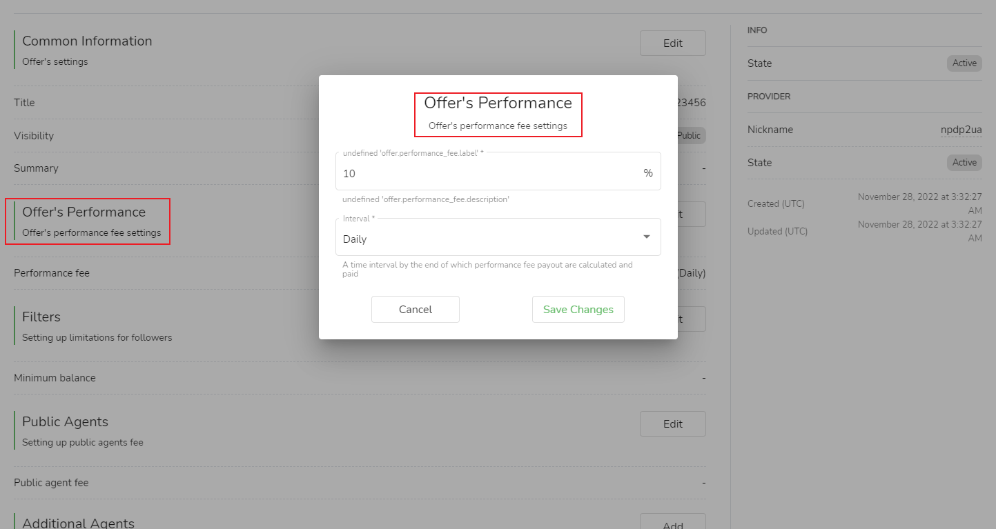 Presentar y promover:La fuente de la señal puede establecer una tarifa de presentación y promoción, que se paga en forma de porcentaje. Tenga en cuenta que el enlace de unión de la fuente de señal a continuación solo se puede agregar después de completar la configuración de la tasa de pago de la tarifa de promoción específica.