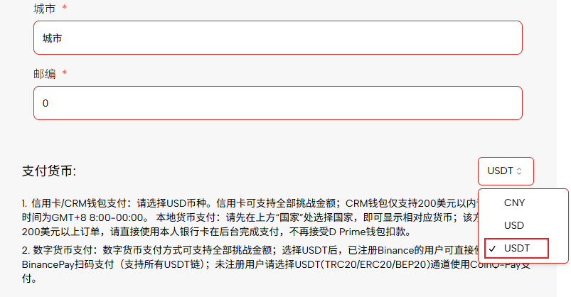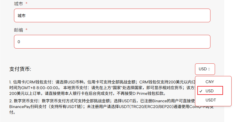 - Na página de pagamento "nação" Selecione o país e o estado da moeda em que deseja pagar e Moeda de pagamento Selecione a moeda correspondente no menu suspenso (por exemploCNY).