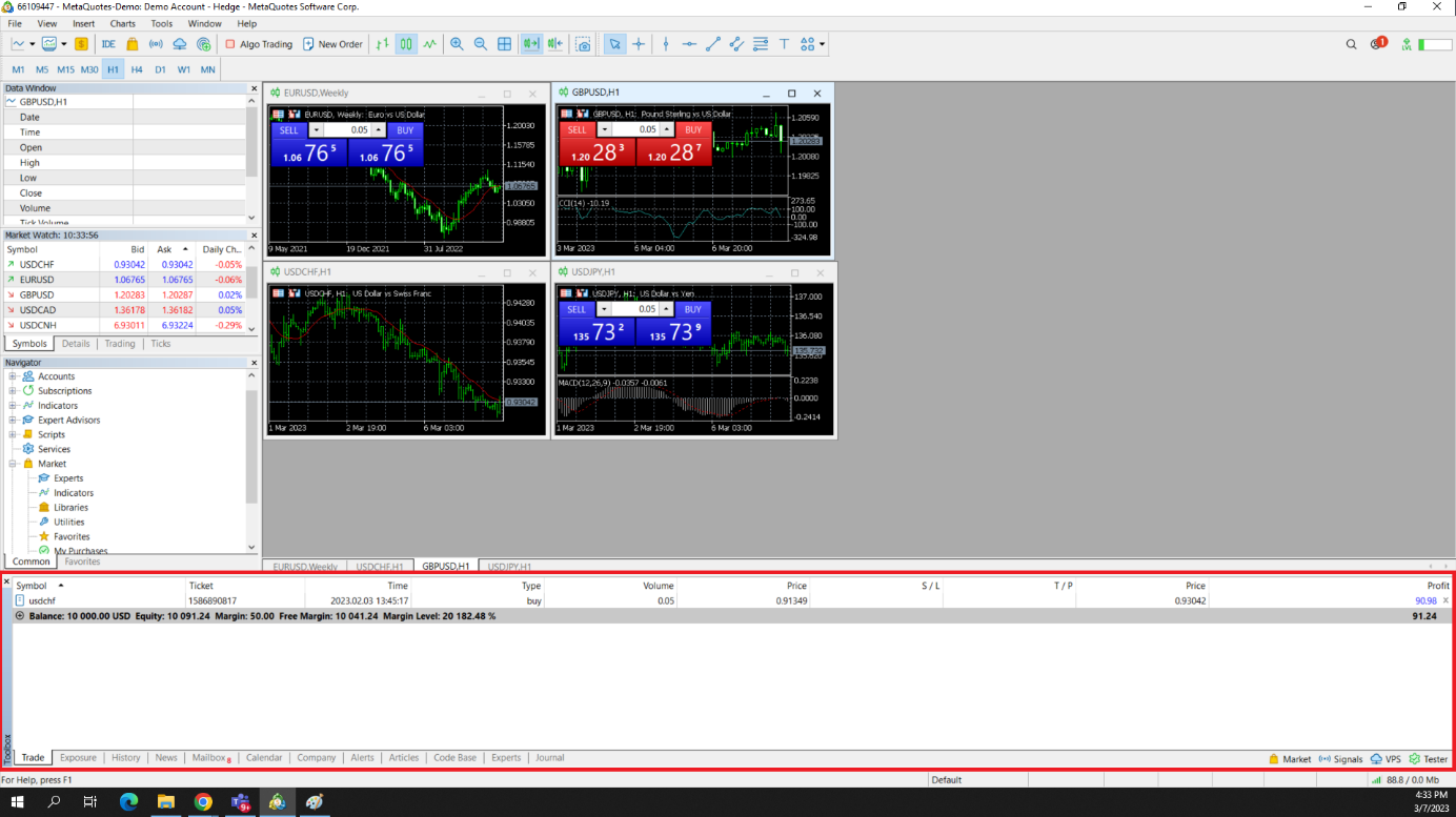 Os usuários podem alternar entre diferentes contas de negociação em [Conta] em [Navegação] e definir indicadores e transações EA.