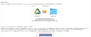 安装包下载完成后,双击然后点击左侧图标并拖拽至右边蓝色文件夹即可完成安装。